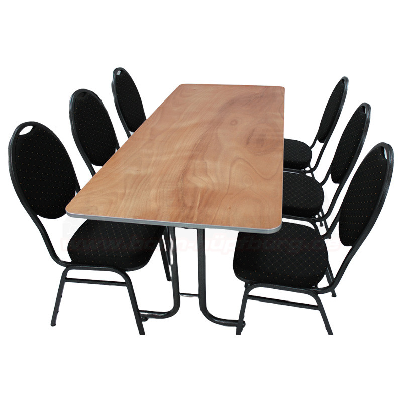 | Personen | 6 Personen mit unseren Bankettstühlen 8 Personen, wenn auch die Köpfe besetzt werden |