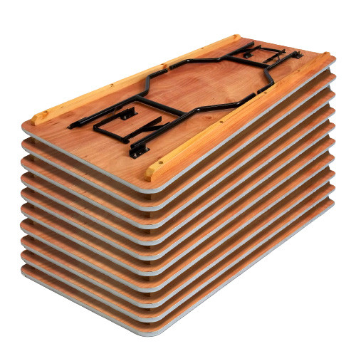 Die Banketttische stehen auf Palette zur Abholung bereit. Wir können sie mit unserem Hubwagen direkt bis an Ihr Fahrzeug fahren.
