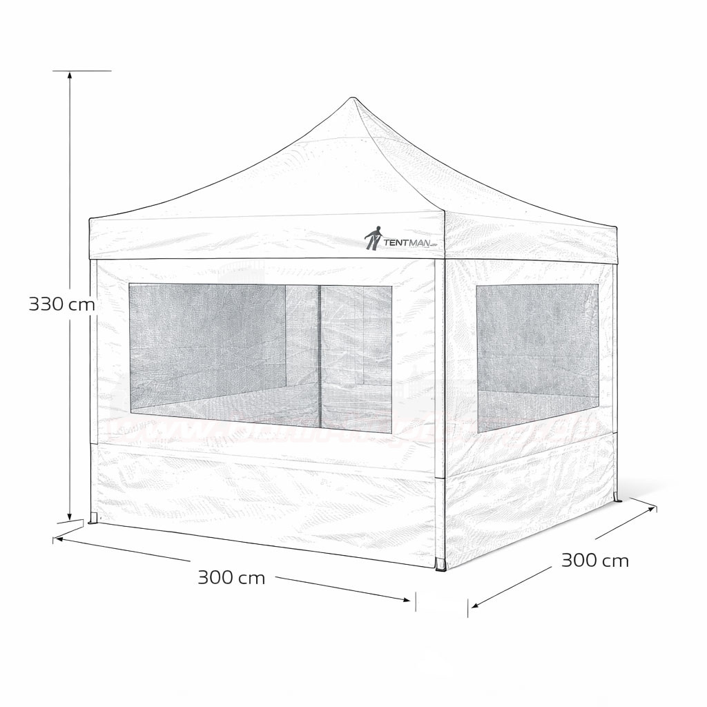 Die weißen Seitenteile mit integrierten Fenstern sorgen für eine helle und freundliche Atmosphäre im Zeltinneren. Durch die transparenten Fenster fällt viel Tageslicht hinein, während Ihre Gäste gleichzeitig vor Wind geschützt sind.
