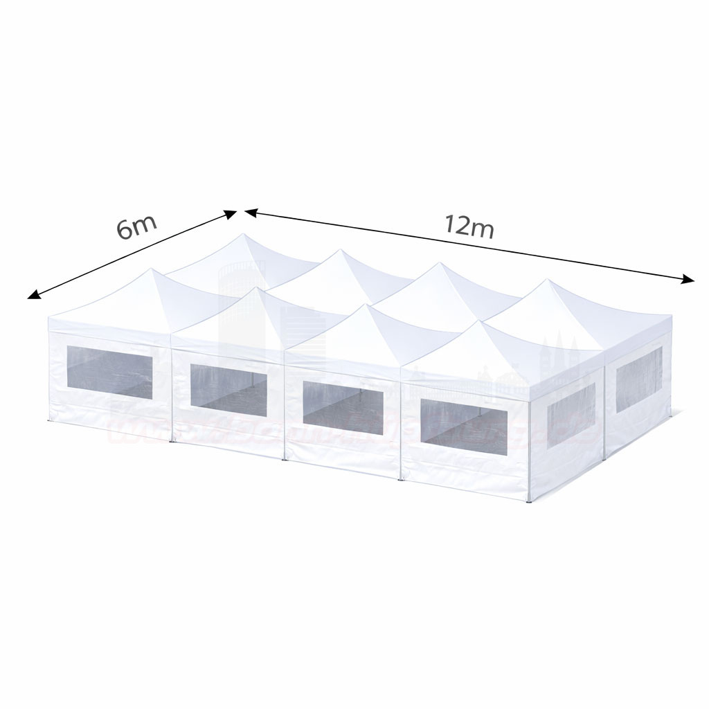 🏕️ Faltzelt Kombination 6m x 12m weiß – mit Seitenteilen