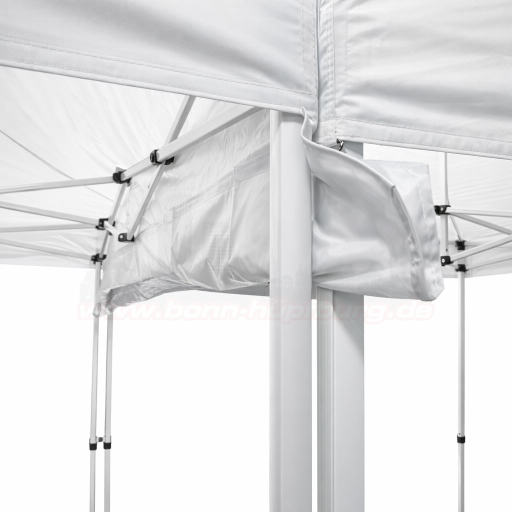 ✔ eine durchgehend weiße Zeltplane, die modern und hochwertig wirkt