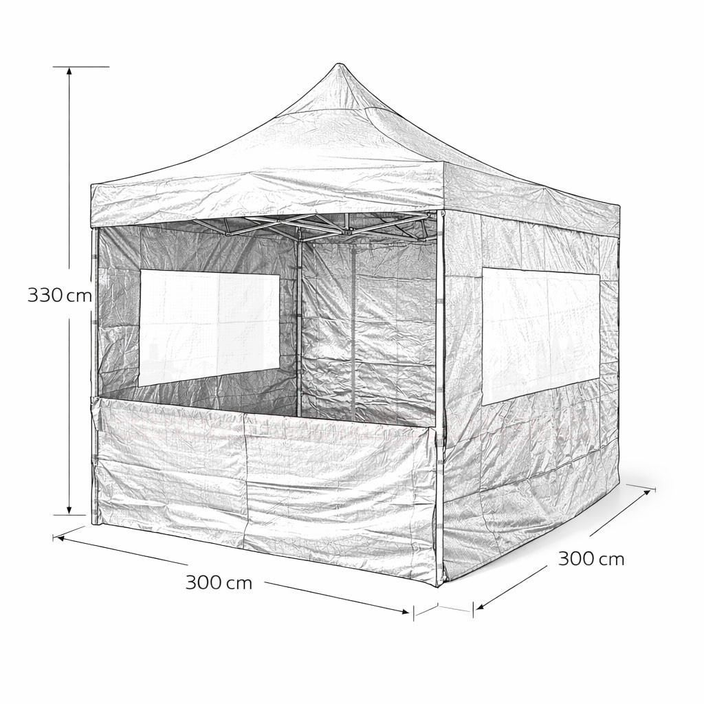 Praktischer Faltzelt Verkaufsstand 3×3 m in Schwarz mit Schnellaufbau-System und großen Verkaufsfenstern. Ideal für Kindergeburtstage, Familienfeiern, Vereinsfeste oder Eventstände. Die geschlossenen Seitenwände und transparenten Fenster sorgen für Schutz und gute Sichtbarkeit der Ausgabe.