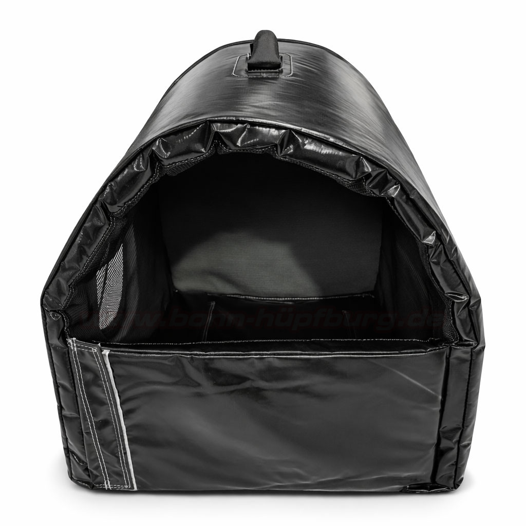 Die robuste, schwarze Schallschutzhaube aus strapazierfähiger PVC-Plane umschließt das Gebläse vollständig und reduziert den Geräuschpegel spürbar. Gleichzeitig schützt sie zuverlässig vor Regen, Stößen und äußeren Einflüssen – perfekt für Gartenpartys, Schulhöfe oder Vereinsfeste in Köln und Umgebung.