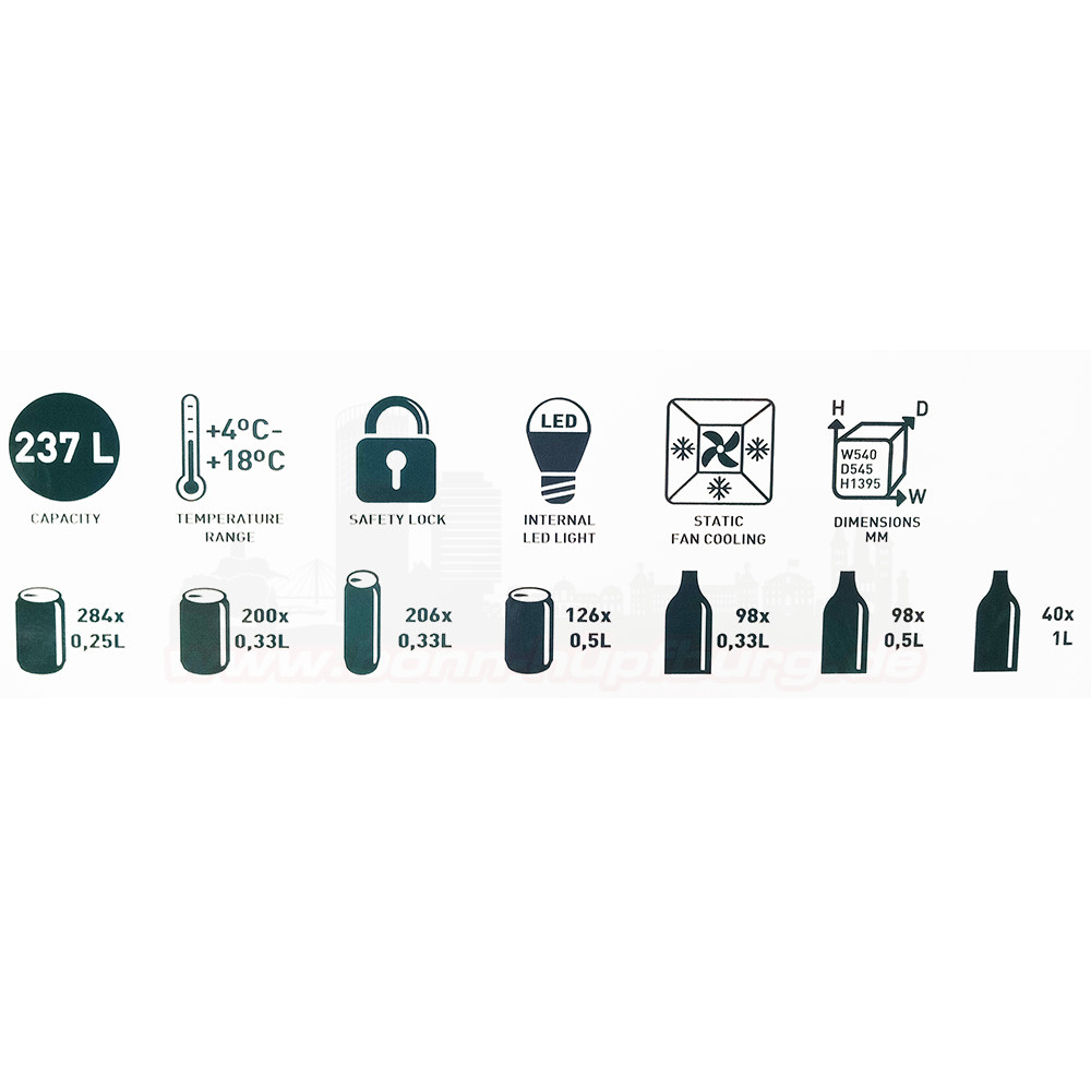 ✔ Großzügiger Innenraum (237 Liter) – viel Platz für Flaschen & Dosen