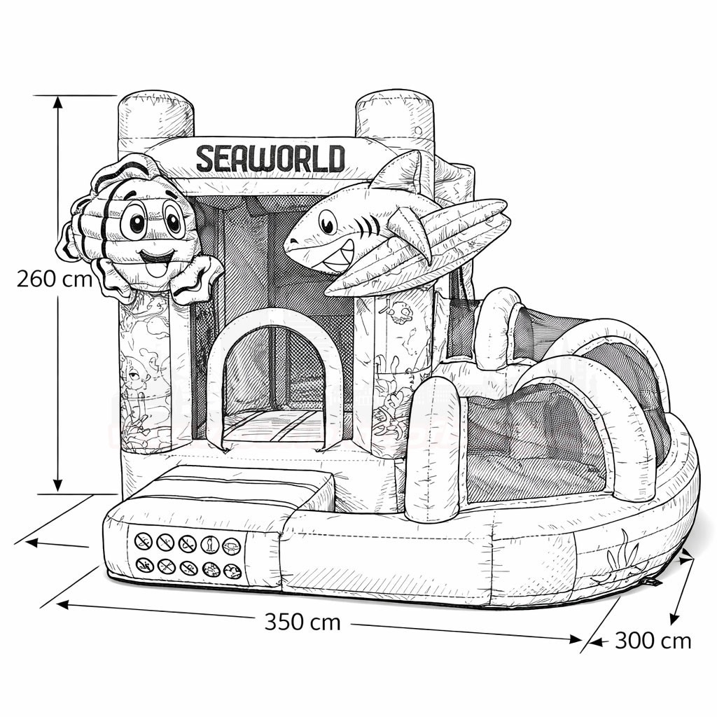 Tauchen Sie ein in eine bunte Unterwasserwelt voller Spaß und Abenteuer! Die Hüpfburg Mini Multifun Seaworld mit Rutsche ist das perfekte Highlight für Kindergeburtstage, Familienfeiern und Events in Bonn und Umgebung. Mit ihrem liebevoll gestalteten Meeresdesign, den fröhlichen Figuren und der integrierten Rutsche sorgt sie garantiert für leuchtende Kinderaugen.