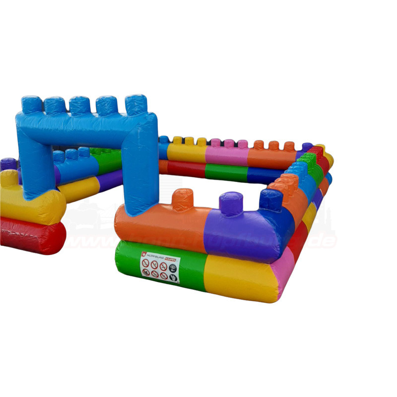 Aufblasbare Umrandung in Bausteine Optik mit Toreingang. Kann dazu dienen, einen separaten Kleinkinderbereich einzurichten auf Ihrer Veranstaltung. So können die Kleinen einfacher beaufsichtigt werden.
