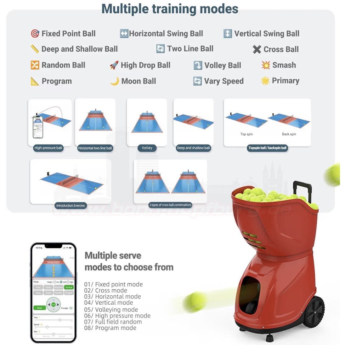 Die Ballmaschine bietet dir zahlreiche Einstellmöglichkeiten für ein individuelles Training: