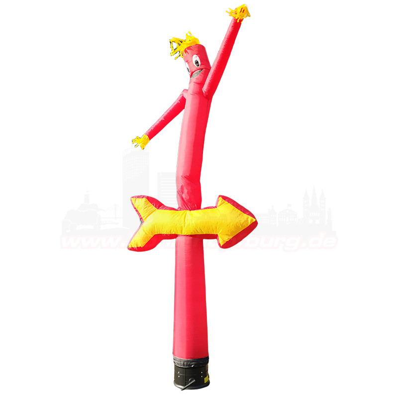 Der Skydancer Pfeil 5m ist ein auffälliger Event-Hingucker mit rotem Körper, freundlichem Gesicht und großem gelben Pfeil. Durch seine tanzenden Bewegungen zieht er sofort Aufmerksamkeit auf sich und weist Gästen den Weg zu Ihrem Event. Perfekt für Kindergeburtstage, Familienfeiern und Events in Bonn & Umgebung. Abholung an unserer Ausgabestelle. Wochenendpauschale (Fr–Mo) verfügbar.